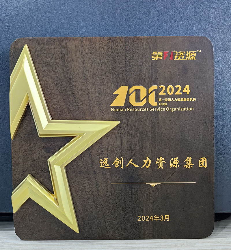 2024年3月,遠(yuǎn)創(chuàng)人力資源集團(tuán)榮獲第一資源人力資源服務(wù)機(jī)構(gòu)100強(qiáng)