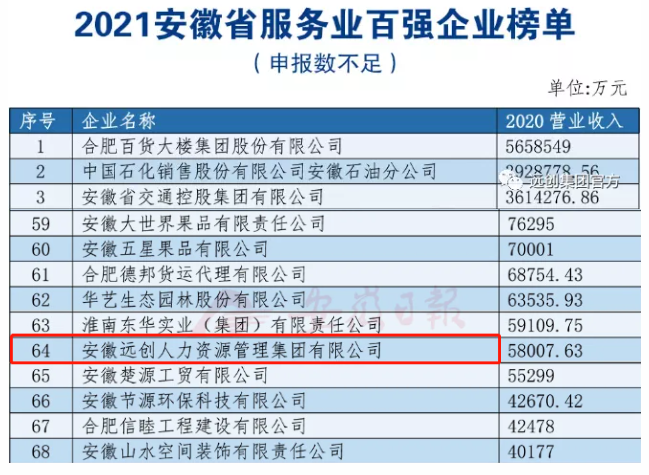 12月7日,由安徽省企業(yè)聯(lián)合會、安徽省企業(yè)家聯(lián)合會主辦的2021安徽省百強企業(yè)高峰論壇在合肥隆重召開,會上發(fā)布了2021安徽省百強企業(yè)、服務(wù)業(yè)百強企業(yè)、制造業(yè)百強企業(yè)系列榜單,評選企業(yè)范圍包括在安徽轄區(qū)內(nèi)的各類中央、地方國有及民營大中小企業(yè)。其中,遠創(chuàng)人力資源集團榮登“2021安徽省服務(wù)業(yè)百強企業(yè)”榜單。