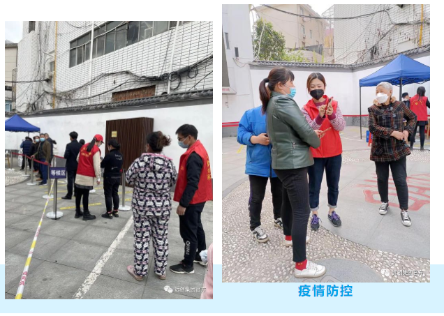 集團志愿者們身穿紅色馬甲,與醫(yī)護、社區(qū)人員一起,做待檢測人員身份信息核對、體溫測量、健康碼檢查等工作,并提醒大家保持安全間距。