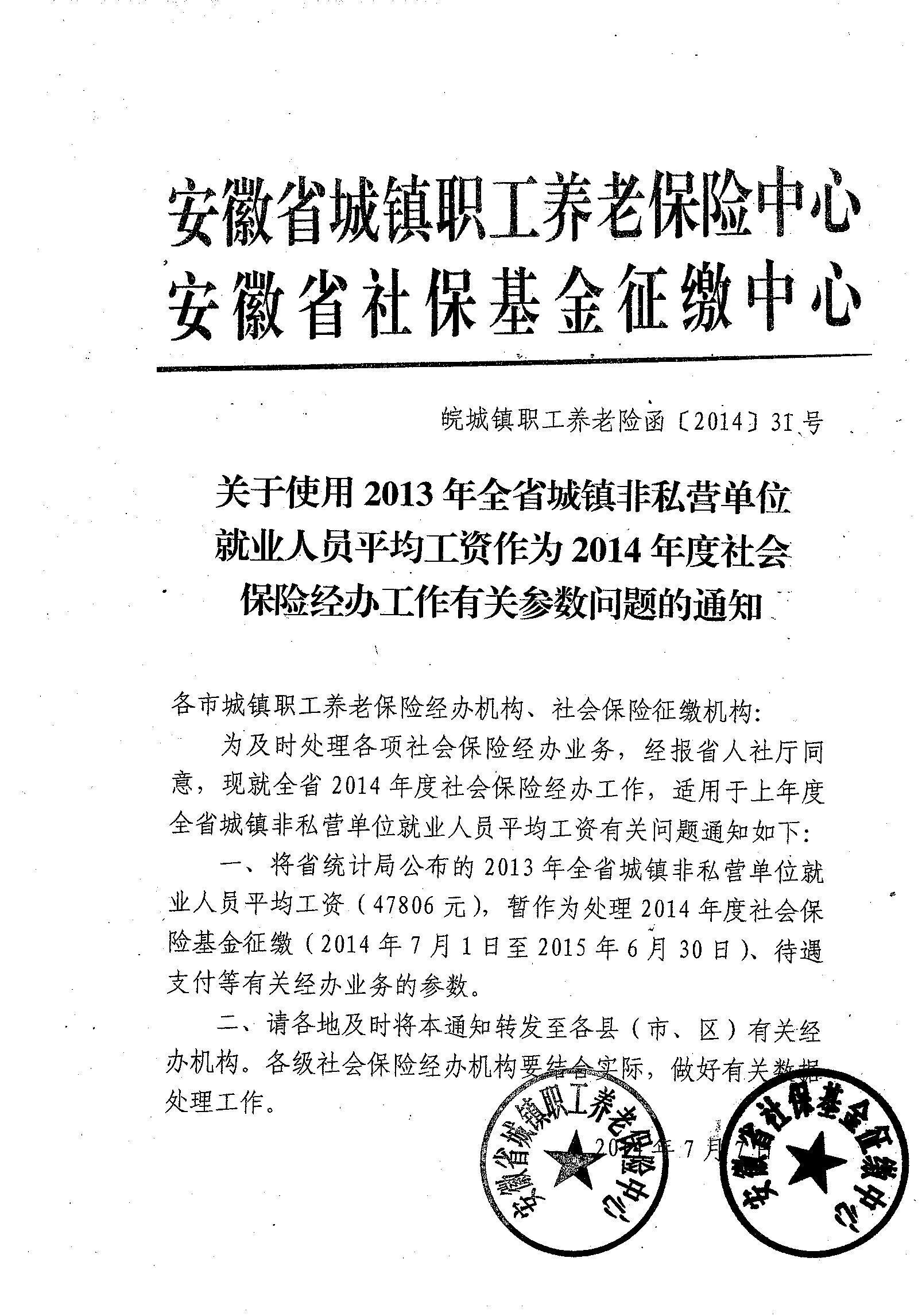 關(guān)于使用2013年全省城鎮(zhèn)非私營(yíng)單位就業(yè)人員平均工資作為2014年度社會(huì)保險(xiǎn)經(jīng)辦工作有關(guān)參數(shù)問(wèn)題的通知