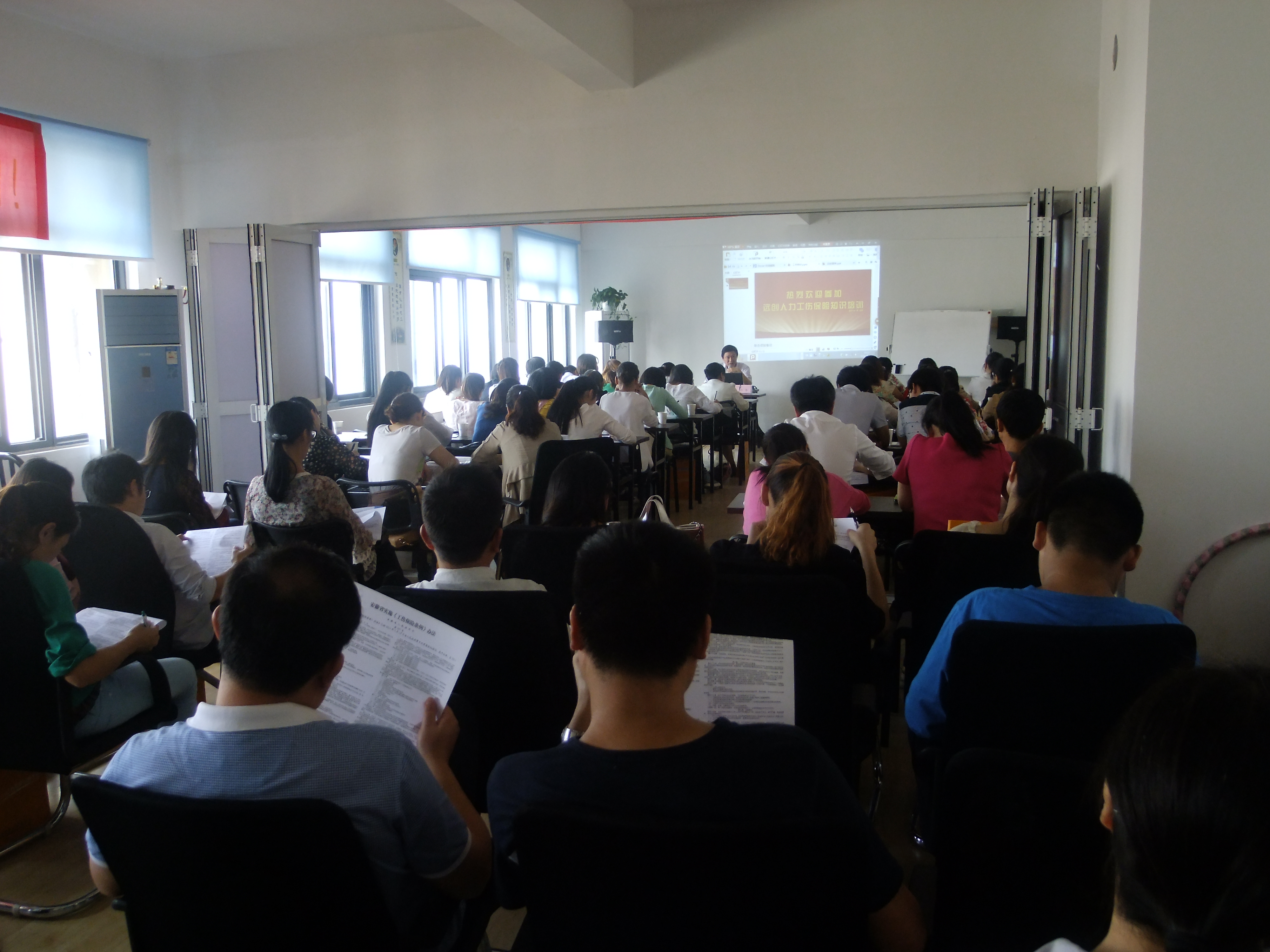 9月20日下午,安徽遠創(chuàng)人力資源管理有限公司特邀合肥市人力資源和社會保障局工傷生育科的吳老師蒞臨我公司開展公益培訓活動,此次培訓主要圍繞為合肥市企業(yè)職工工傷保險的辦理、報銷、風險預防、政策解讀以及工傷保險條例等專業(yè)知識進行了系統(tǒng)的講解。參加培訓的不僅有企業(yè)的工傷保險經(jīng)辦人員,還有人社局的相關(guān)科室領導及勞動法專業(yè)律師等,近一百余人。