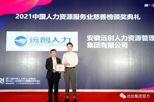 2021年4月23日,由中國領先的人力資源行業(yè)第三方媒體平臺“第一資源”發(fā)起的2021第六屆中國人才峰會(成都站)暨中國人力資源服務業(yè)慈善榜頒獎典禮在成都隆重舉行,遠創(chuàng)人力資源集團作為獲獎企業(yè)受邀出席并領獎。