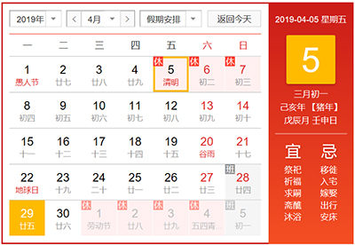 1、清明節(jié)假日為2019年4月5日(二月二十)-4月7日(二月廿二),共三天,4月8日(二月廿三)正式上班。