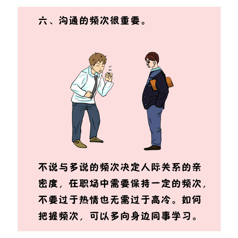 不說與多說的頻次決定人際關(guān)系的親密度,在職場中需要保持一定的頻次,不要過于熱情也無需過于高冷。如何把握頻次,可以多向身邊同事學習。