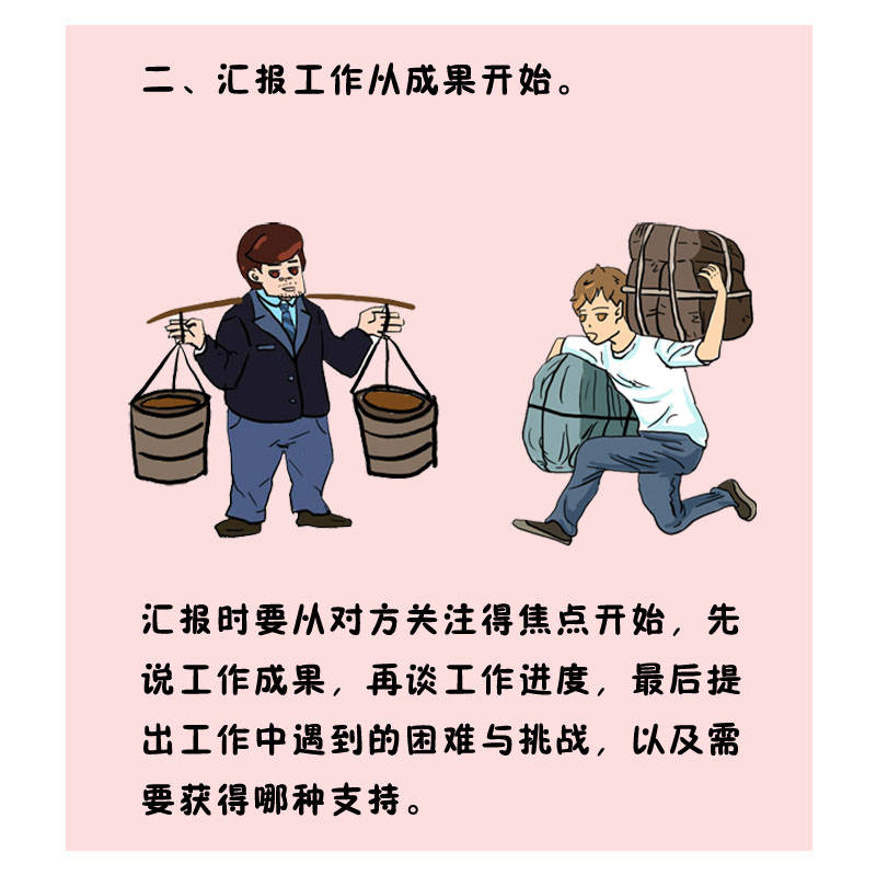 匯報時要從對方關(guān)注得焦點開始,先說工作成果,再談工作進度,最后提出工作中遇到的困難與挑戰(zhàn),以及需要獲得哪種支持。